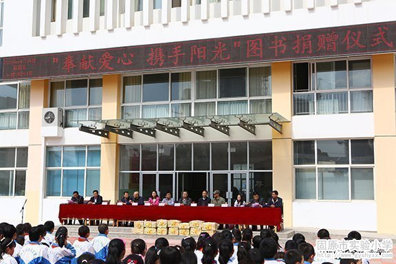 携手阳光奉献爱心 捐赠图书情暖校园 知识启迪梦想,爱心孕育希望。4月24日下午,宁夏黄河出版传媒集团阳光出版社一行8人来我校进行图书捐赠暨作家进校园活动。实验小学是一所新建学校,学校新建的图书室藏书无法满足孩子们的读书需求。在这种情况下,张福校长和阳光出版社多方面联系,积极争取,与阳光出版社携起手来,共同开展“奉献爱心,携手阳光”活动,为我校争取到了大量书籍,给学校的小朋友们带来了丰富的精神食粮。 下午3点,在学生们热情欢迎的掌声中捐赠仪式正式开始。参加捐书活动的领导和来宾有:阳光出版社那大庆社长、阳光出版社张妤副社长、市教育局张树宏副局长等。 活动由我校办公室主任范百顺主持,捐书仪式上王平副校长代表学校对参加活动的领导和来宾表达了诚挚的谢意和崇高的敬意,在仪式上代表图书受赠 方致了辞;接着张福校长向阳光出版社赠送了赠书牌匾;学生代表王婷发言,表达了对阳光出版社的感恩和感激。最后实验小学全体学生同唱歌曲《感恩的心》,以此对阳光出版社的义举表述深深地感谢。 一本书,给予了孩子一份知识和财富,也给予了孩子一份感动和希望。这些书籍可以给孩子带来知识和快乐,相信一定会有更多的单位和各界人士参与到这次活动中来,我们也相信,此次活动会给每位参与者和捐赠者无法言语的感动。
